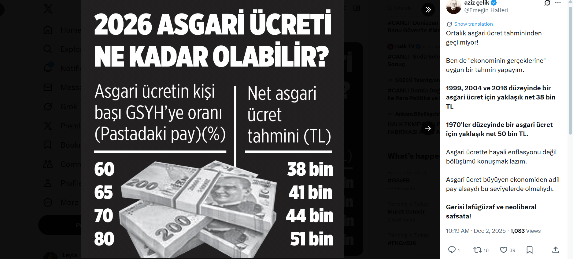 Asgari ücret büyüyen ekonomiden adil pay alsaydı bu seviyelerde olmalıydı.