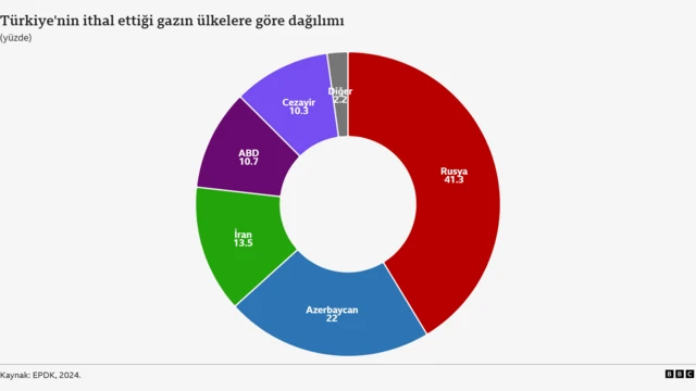 EPDK’nın 2024 verilerine bakıldığında ise Rusya’nın yüzde 41,32’lik payla birinci sırada olduğu görülüyor.